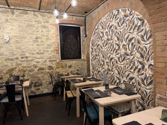 I rimandi gastronomici sono molteplici, attingono alla tradizione umbra che si esalta con i profumi di autunno, alla memoria (l’agnello cacio e uova viene sostituito da un maiale che non vanta ancora la reputazione affettiva del primo dopo le campagne animaliste pasquali). Ma c’è anche la modernità del mare e dei crudi di carne.