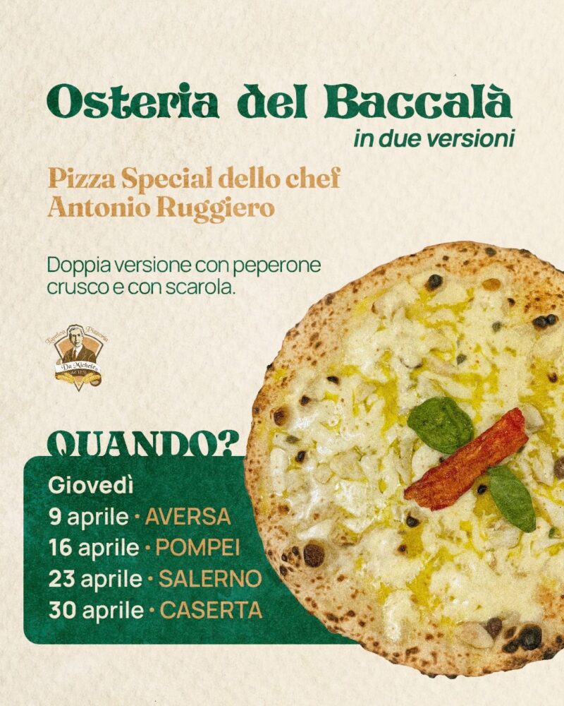 Si tratta di una proposta che unisce due mondi profondamente radicati nella tradizione del Sud: da una parte l’arte della pizza di Da Michele, dall’altra l’esperienza di Ruggiero nel valorizzare il baccalà in chiave gastronomica. Il risultato è una pizza pensata per chi ama i gusti veri, decisi, ma anche legati alla memoria e alla cucina di casa.