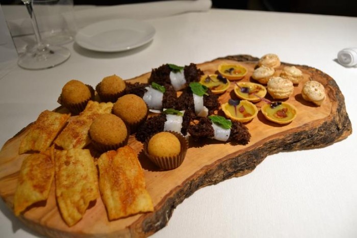 Inizia cosi, con questa importante consapevolezza, la cena a quattro mani del duo Sabatelli-Lombardo, mentre in tavola, accompagnati dallo Champagne Brut Resérve Boizel, vengono serviti gli amuse-bouche, fra cui spiccano i piccoli macarons con salsa di burro e alici ed il pan di cacao avvolto in sottili veli di lardo. Talmente tanto apprezzati, da evaporare in un attimo. Va anche detto, che tutte le etichette dei vini serviti da qui in avanti, sono state curate da Feudi di San Gregorio, divenuto da quest’anno, anche l’unico distributore italiano della Maison de Champagne Boizel.