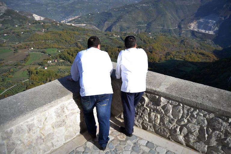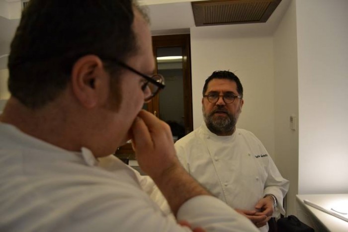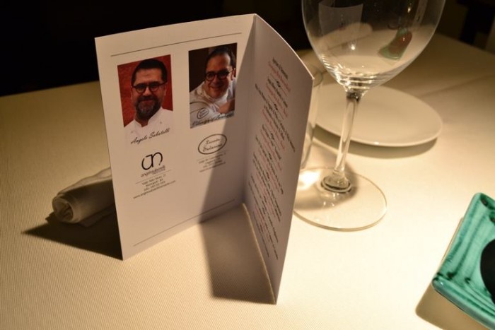 Per fortuna, adesso che tutti li conosciamo bene, non sapremo mai quanto sarebbe oscuro il mondo della ristorazione pugliese senza Angelo Sabatelli, cosi come non sapremo mai quanto ancor più isolati sarebbero i Monti Alburni senza la cucina di Vitantonio Lombardo. Pensate adesso, alla fortuna di averli tutti e due, per un’intera serata, agli stessi fornelli.