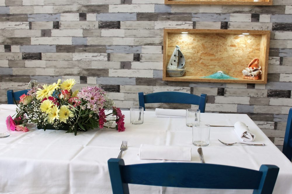 La sala primaria, luminosa e con arredi in stile marina con ceramiche di servizio e mattonelle di Vietri, racconta la filosofia del locale, dove la cucina sposa in particolare le pietanze di mare ma anche la possibilità di fruire di piatti diversi nel variegato menù proposto, con la brace a vista insieme ad una carta di vini interessante e la cantina visitabile in sala.