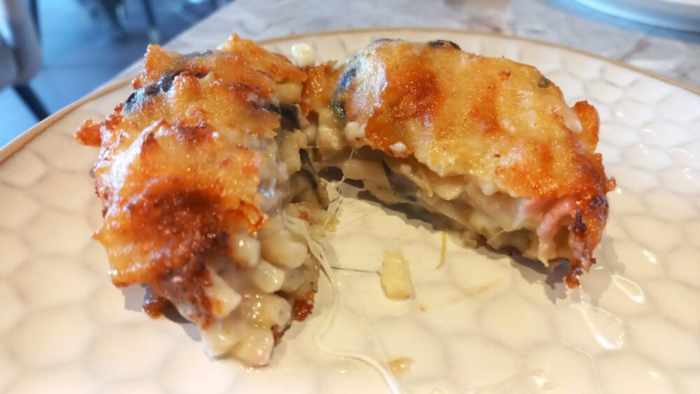 Menzione speciale per la voce “Pizze fritte e ripassate al forno” con la “Doc Fritta” ovvero impasto fritto e al forno, pomodoro biogustarosso, formaggio grattugiato in cottura, in uscita fette di mozzarella di bufala a crudo, formaggio grattugiato olio evo frantoio Moscato e basilico. Tra le pizze tradizionali insieme alle classiche e intramontabili anche la “Giallo Margherita” con passata di pomodorino giallo “lucariello”, mozzarella di bufala, pomodorini interi “spunzillo”. Inoltre, c’è la pizza della casa, la “Sapureat” con cornicioni ripieni di fior di latte e macinato di chianina, fior di latte, parmigiana di melanzane homemade, fonduta di provola, olio evo frantoio Moscato e basilico e la “Scostumata” con base di fonduta di provola e fior di latte, salsiccia di maialino nero, patate cotte nel forno a legna, olio evo frantoio Moscato e basilico. Se si consulta la lista “Pizze Special” balza subito agli occhi (e al palato…) la “San Gennà”: ragù napoletano, fior di latte, ricotta, polpettine di manzo, in uscita, salsa di basilico homemade, pepe, scaglie di parmigiano, olio evo del frantoio Moscato. Alla sezione delle “pizze contemporanee” c’è un’originale “Nerano” proposta con base di pesto di zucchine, fior di latte e all’uscita stick di zucchine fritte, scaglie di provolone del monaco dop, pepe nero, olio evo del frantoio Moscato e basilico, e la pizza “Caponata”: base bianca con provola di Agerola, caponata classica siciliana con melanzane, pomodorini, pinoli tostati, olive verdi, cipolla ramata, olio evo e basilico.