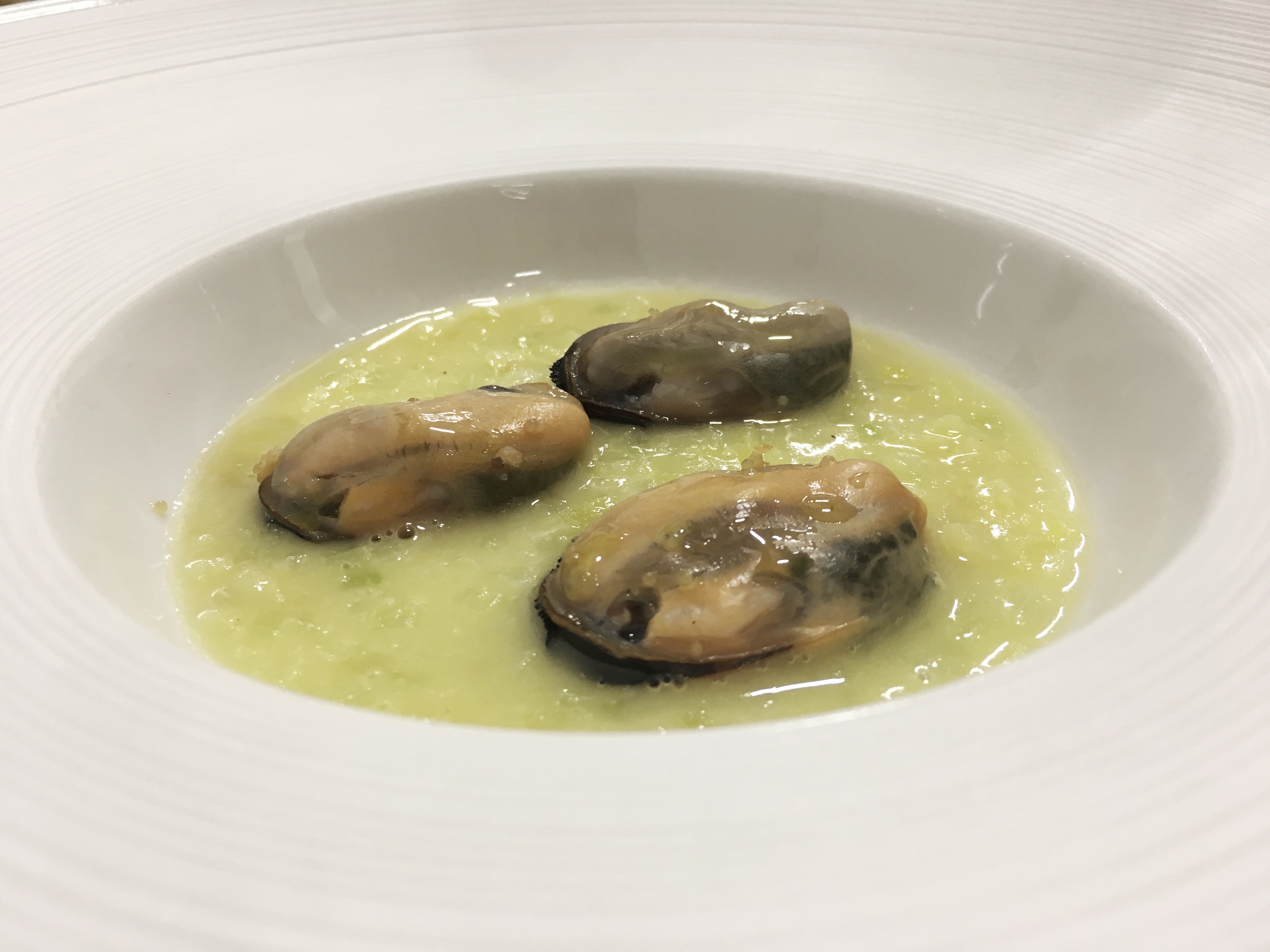 Cristian Torsiello – cozze ripiene di uova di aringa piccanti risotto di patate e sedano e aceto affumicato