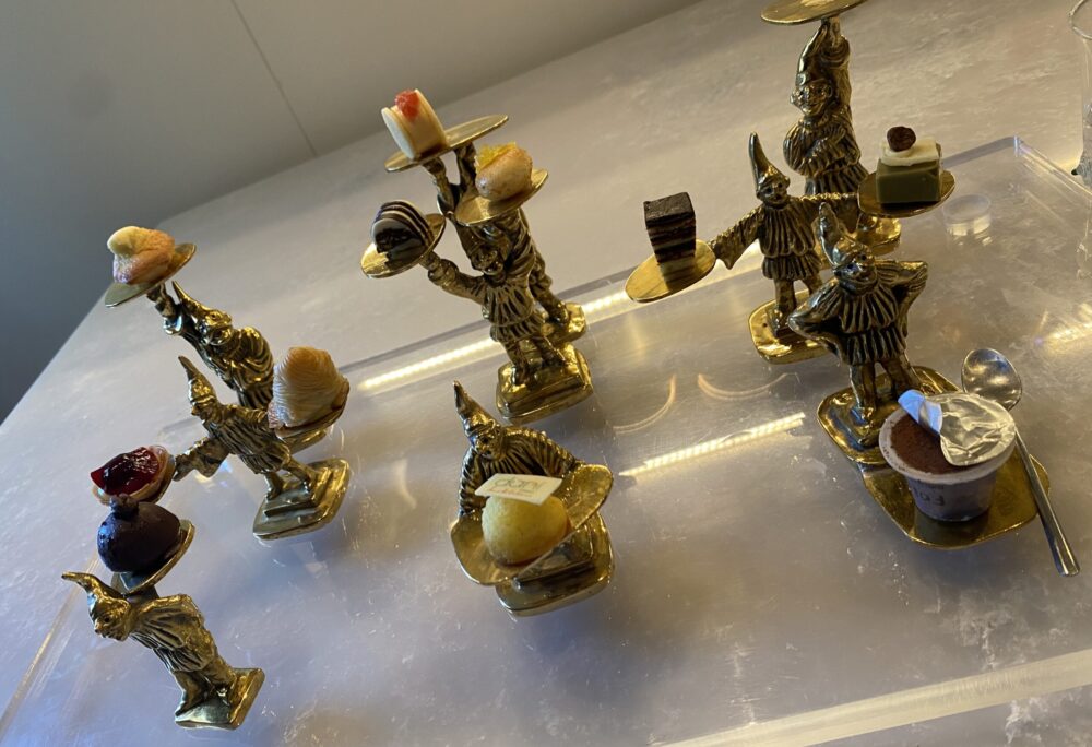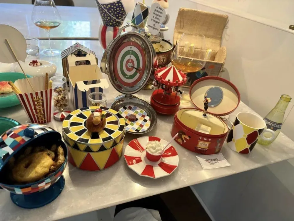Doabbiamo poi ragionare sul divertimento, altro elemento di questa cucina: il menu è interattivo, richiede una partecipazione del cliente, fino a quando gli viene dato il benvenuto nel Circo, il dolce dei dolci finali, un piatto descritto nel dettaglio.