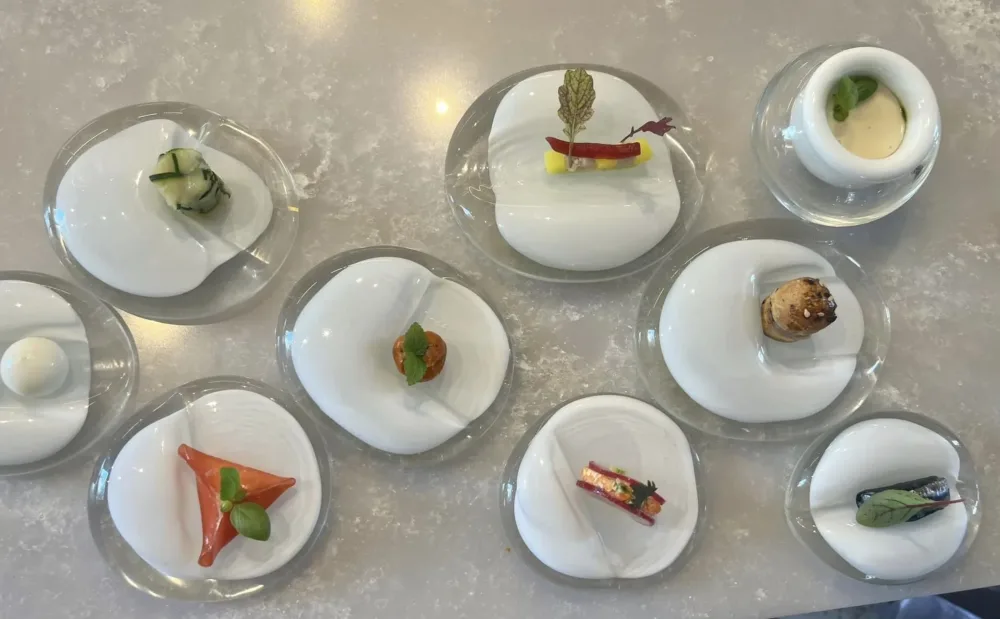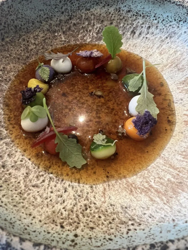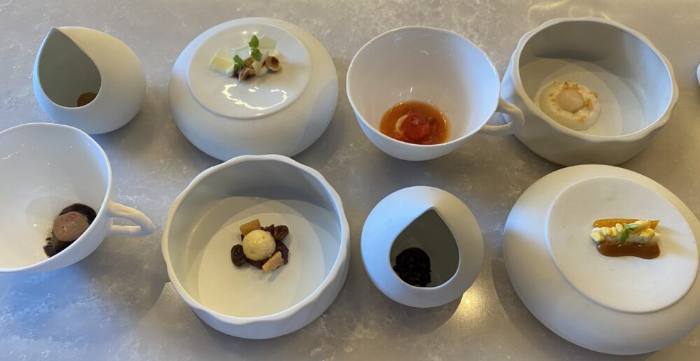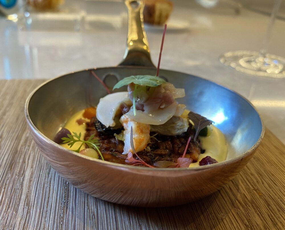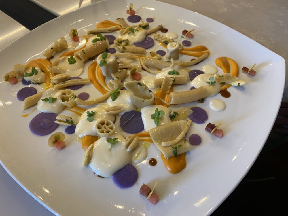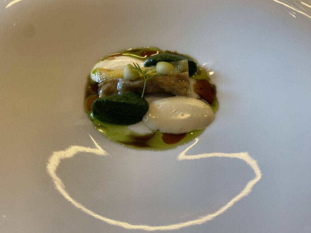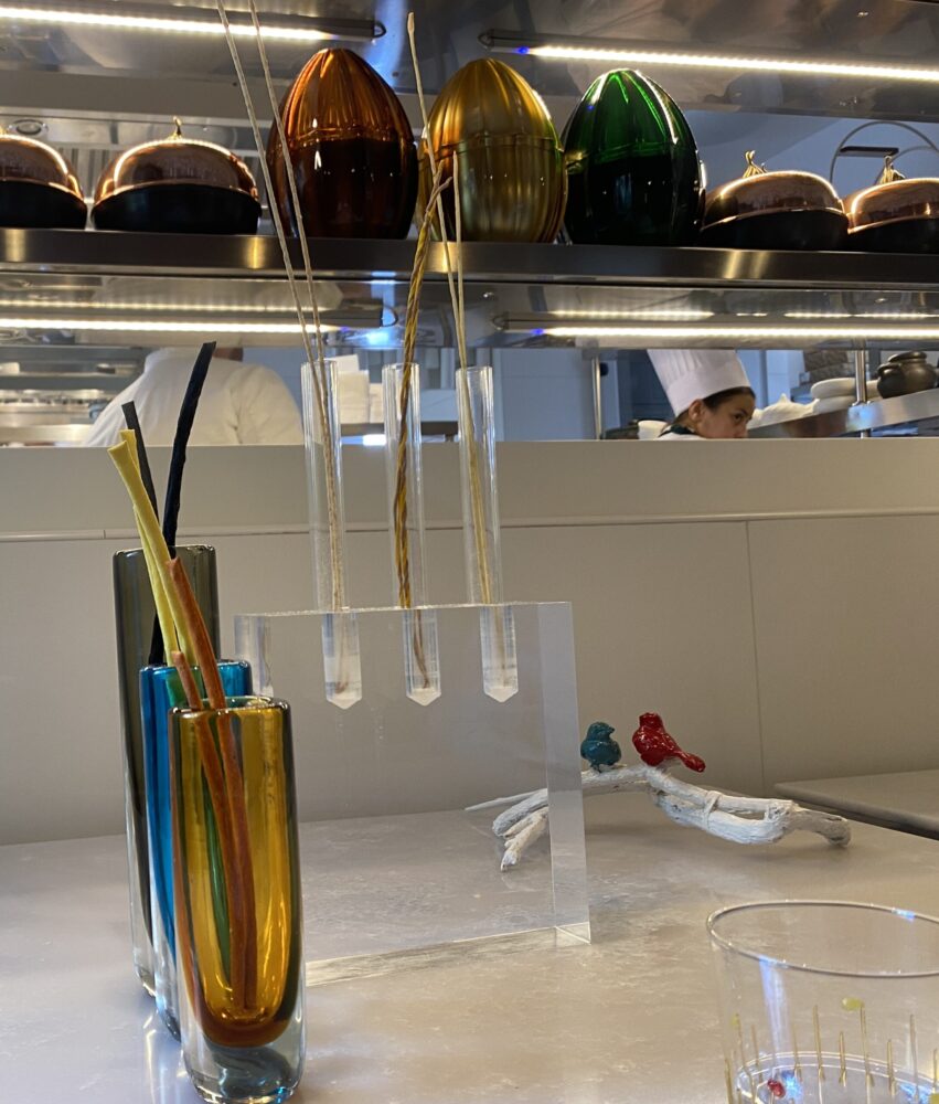 Di Nino abbiamo scritto tanto e devo dire che lo abbiamo trovato come Mauro Uliassi, perfettamente concentrato sulla sua cucina e sulla sua amata Isola Verde. Entrare nel suo giardino mediterraneo pieno di opere d’arte poptrebbe essere l’incipit di una favola, o di un giallo fate voi.