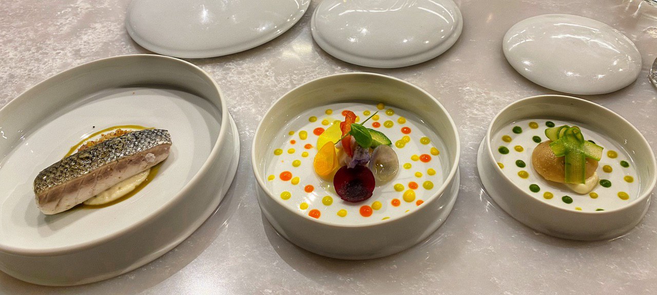 La cucina è ricca, di ingredienti importanti come le tante varietà di crostacei che compongono il gran crudo, di erbe e elementi vegetali provenienti dall’orto, di forme e colori ricercati maniacalmente nella costruzione e nel servizio di ogni piatto.