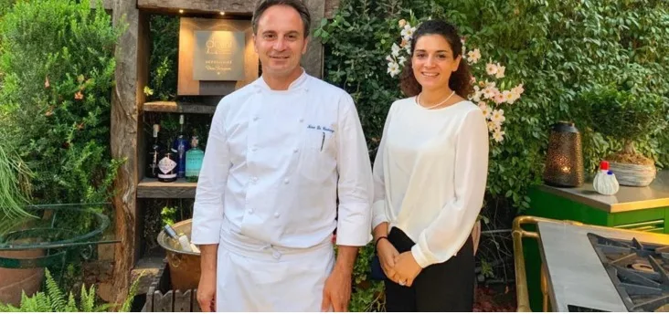 Sei tavoli in sala e altrettanti nel giardino in modo che ogni ospite possa vivere entrambe le esperienze nel corso della serata. Ad accogliere con eleganza è la moglie Marianna. Il menù qui è stampato su carta pregiata da portare a casa come ricordo, impreziosito da belle illustrazioni. Si potrà scegliere à la carte o optare per uno dei tre menù degustazione più quello vegetariano. Carta dei vini imponente con un’ampia selezione di Dom Pérignon di cui Nino di Costanzo è Dèpositaire.