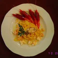 Tagliolini al ragout di crostacei, ostriche e zeste di limoni su gamberi rossi di Gallipoli 16 Agosto 2010 14 commenti