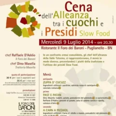 Puglianello, 9 luglio. Cena dell’Alleanza tra i Cuochi e i Presidi Slow Food al Foro dei Baroni 4 Luglio 2014 2 commenti
