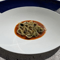 50 Top Italy, Consorzio di Tutela Gragnano, contest, ricetta con mafaldone e carciofi, ricette Mafaldone ai carciofi con aglio nero, tapioca al rabarbaro e scorfano di Luigi Piscopo 30 Aprile 2021 0 commenti