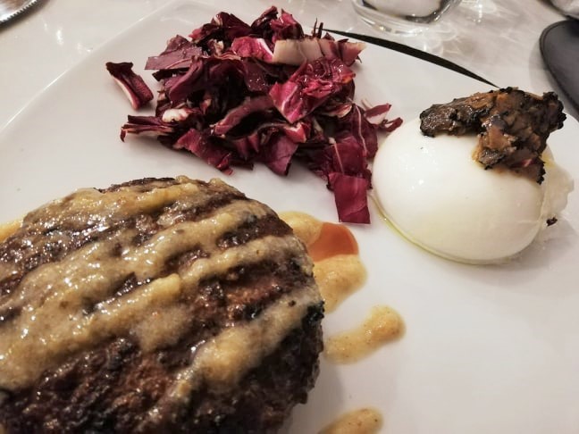 Cipolla ramata di Montoro caramellata, crema di tartufo irpino, nocciole di Giffoni e persino in onore al vino che qui si produce, persino una riduzione di Aglianico.
