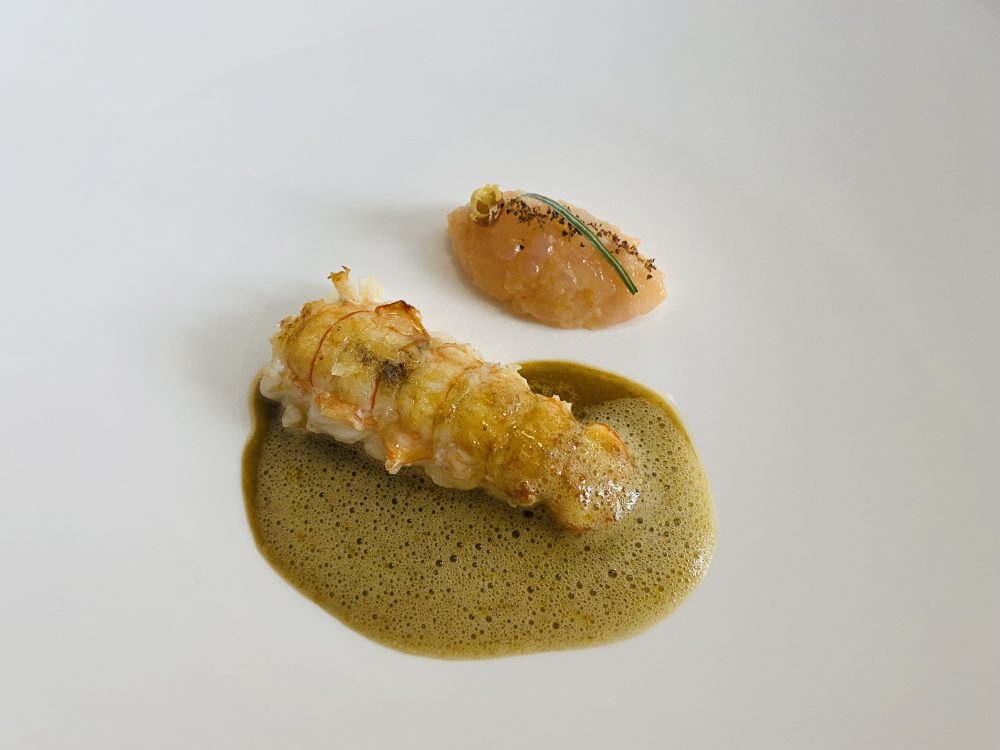 Scampo, ginepro, pompelmo ed elicriso è mediterraneo e collinare, esplode, ogni ingrediente è equilibrato, nessun sovrasta l’altro.
