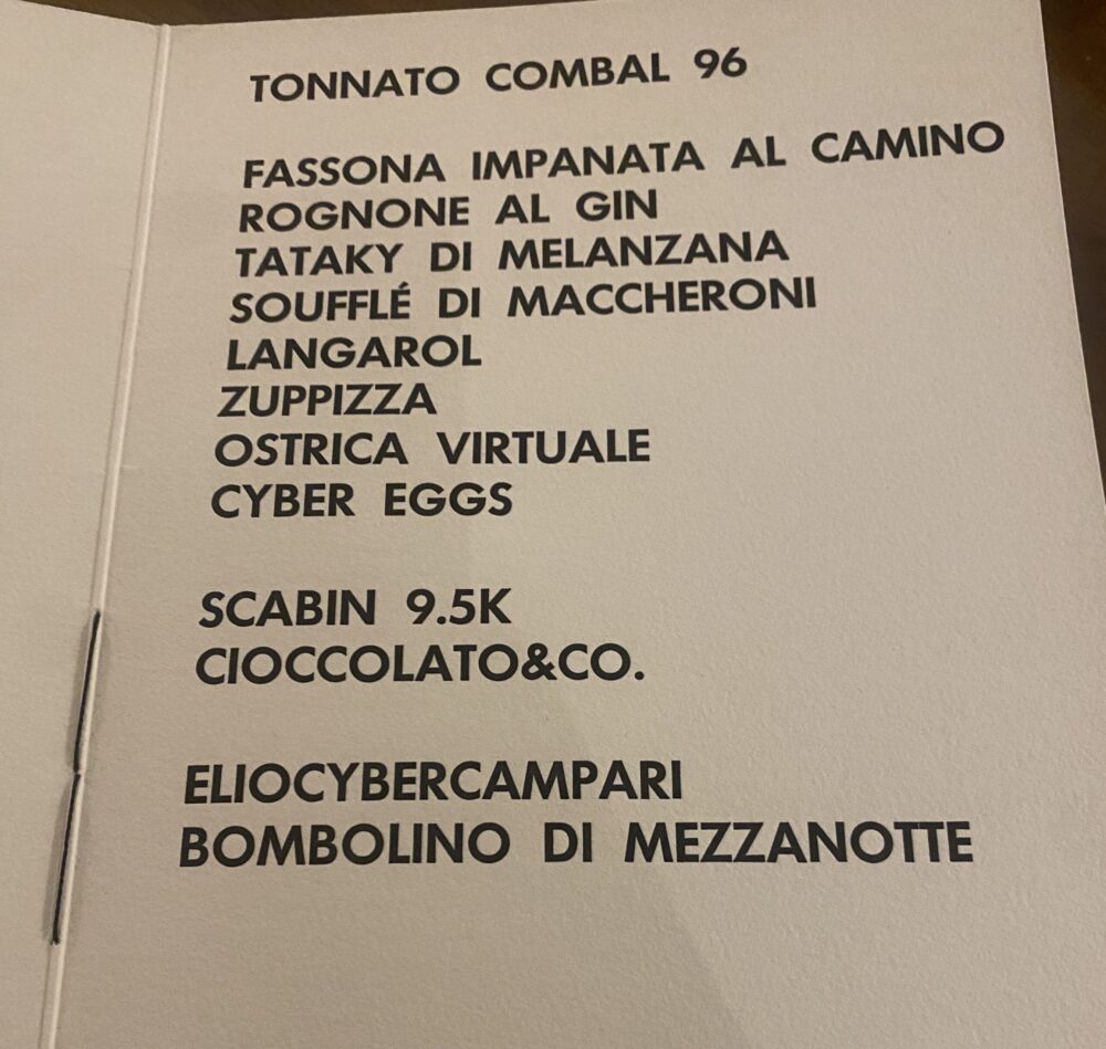 Tanto per capire, al periodo del primo Combal appartiene anche il celeberrimo Cyber-Eggs (ripetete con me: con la –s, santa pazienza, sono tante uova, di storione e di gallina, eppure tutti, anche i sapientoni scrivono Egg), quello con la pellicola che si incide col bisturi e si succhia, un oggetto di food design prima che esistesse il food design, cui poi ispirò persino un ingegnere cinese che si faceva fotografare in buffe pose da samurai con la katana, tale Alving Leung, bistellato a Hong Kong che ideò “Sex on the beach”, un preservativo edibile di konjac e miele, che non ho mai assaggiato, ma ho idea che sia meglio il Cyber.