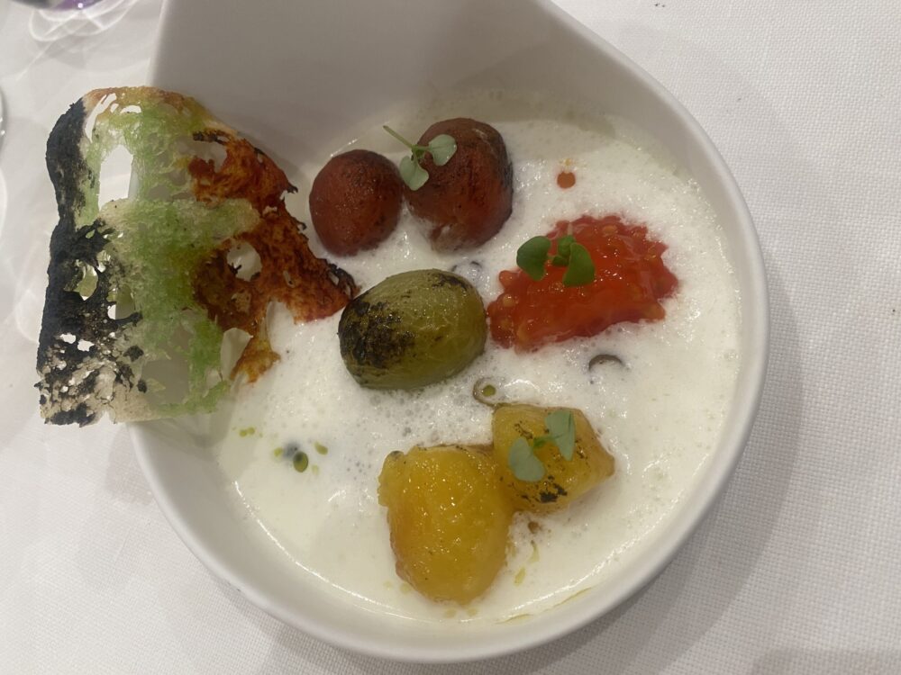 Ristorante Carignano – ostrica, banana verde, chorizo, zuppetta Thai Style