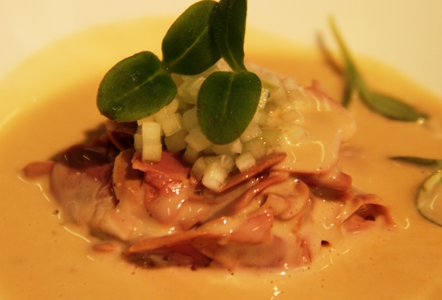 “la vera bravura (…) è superare la bontà assoluta dei codici di riferimento del palato..”, come dire: cucinare, e per cucinare, conoscere, e per conoscere, provare. Alla faccia degli assemblatori di crudité.
