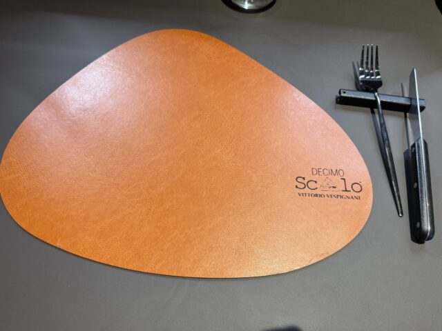 Il comfort è assicurato nei 60 coperti, tutti regolarmente esauriti ogni sera, a conferma che Vittorio, Mary e il loro staff stanno facendo un ottimo lavoro. Anche la mise en place parla la lingua del design, con posateria ricercata e piatti brandizzati, in linea con un’identità ormai ben definita.