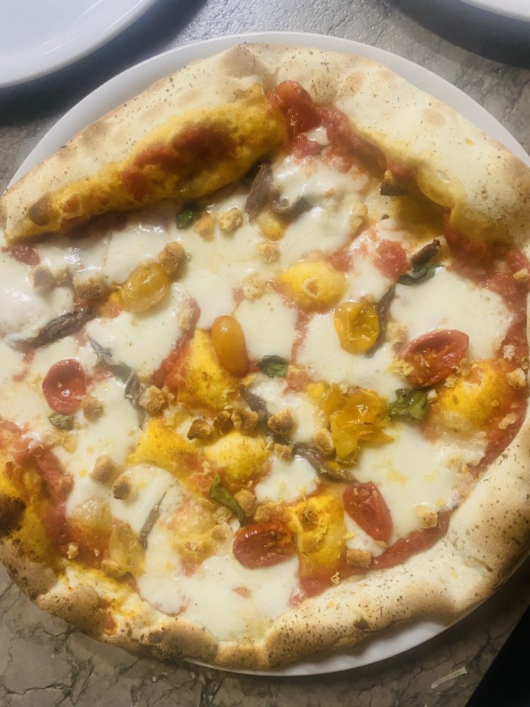 Con grande umiltà, la prima pizza in carta nel menu è “omaggio alla Lombardia – Radich e raspadura”: fiordilatte, formaggio di Branzi, insalata di radicchio, Raspadura, salsa ai frutti di bosco. Come dire: qui sono ospite, insegnatemi chi siete, cosa volete, vi ascolto.