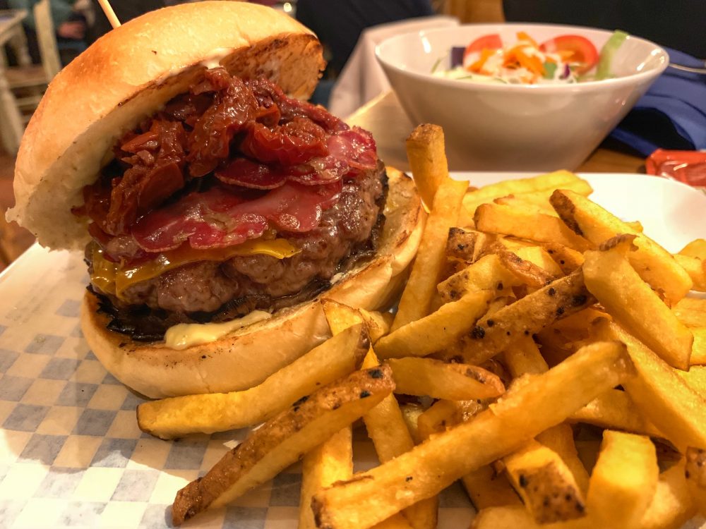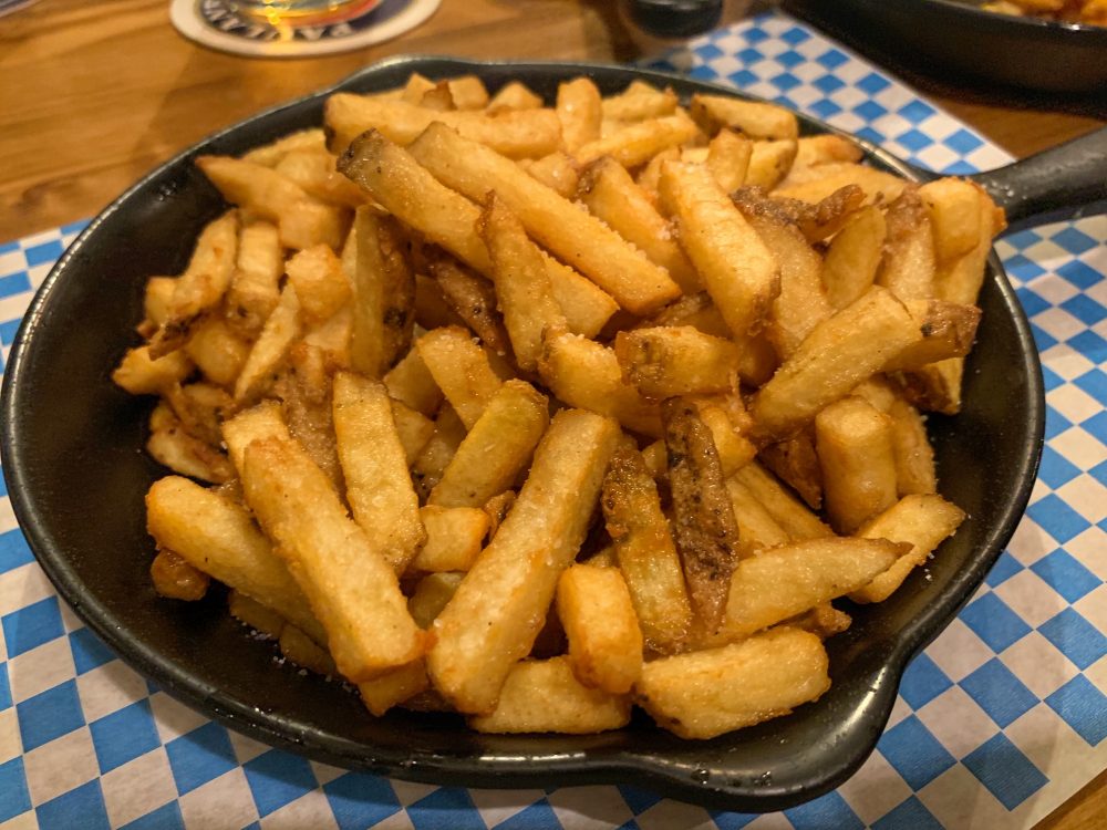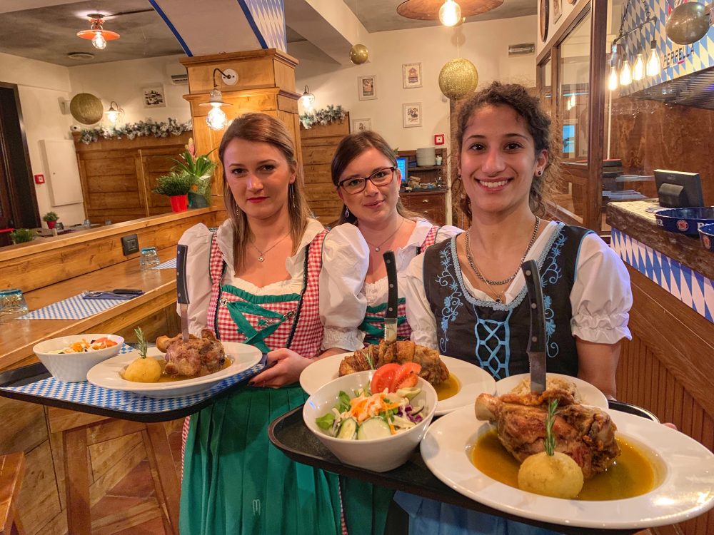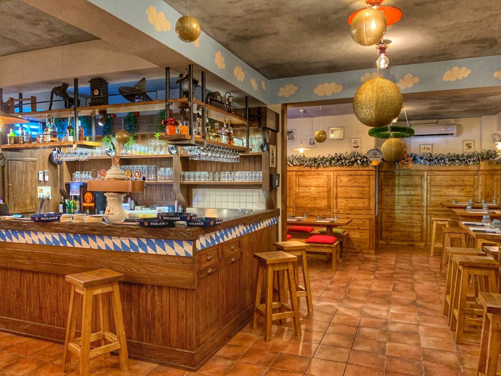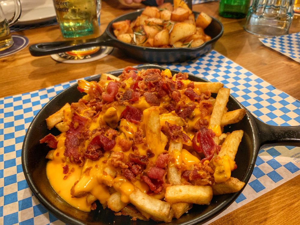 Ad accogliervi ragazze nel tipico costume bavarese. Bella la selezione delle birre servite con una spillatura eccellente. Nella carta delle bevande c’è anche la famosa birra Hacker-Pschorr simbolo della tradizione birraia bavarese. I piatti, in linea con l’aspettativa sono corposi e golosi. Si parte dalle patatine fritte. Qualità ottima, resa finale sopra la media. Si possono scegliere in vari gusti. Sicuramente la variante con cheddar fuso e bacon è indicata per chi ha deciso di godere pienamente della ricchezza di questa proposta.