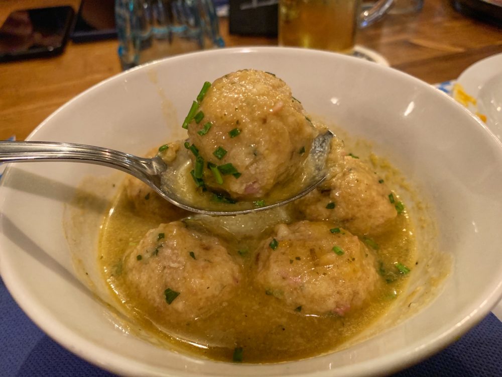 Il vero tuffo è nei canéderli. Un piatto tipico della Germania sudorientale ma anche danubiano-alpina. Sicuramente un must della cultura dell’est e stiamo parlando di grossi gnocchi, o polpette, interamente fatti da pane raffermo, uova e latte. Vengono serviti nel loro brodo di cottura. Una tira l’altra, vi assicuro.