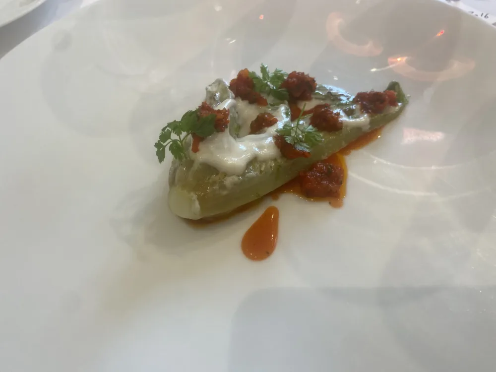 - L’interpretazione del profiteroles, a seguire piccola pasticceria con i savoiardi da tuffare nella crema pasticcera, con una chiusura nel segno dell’assoluta perfezione anche nell’arte dolce.