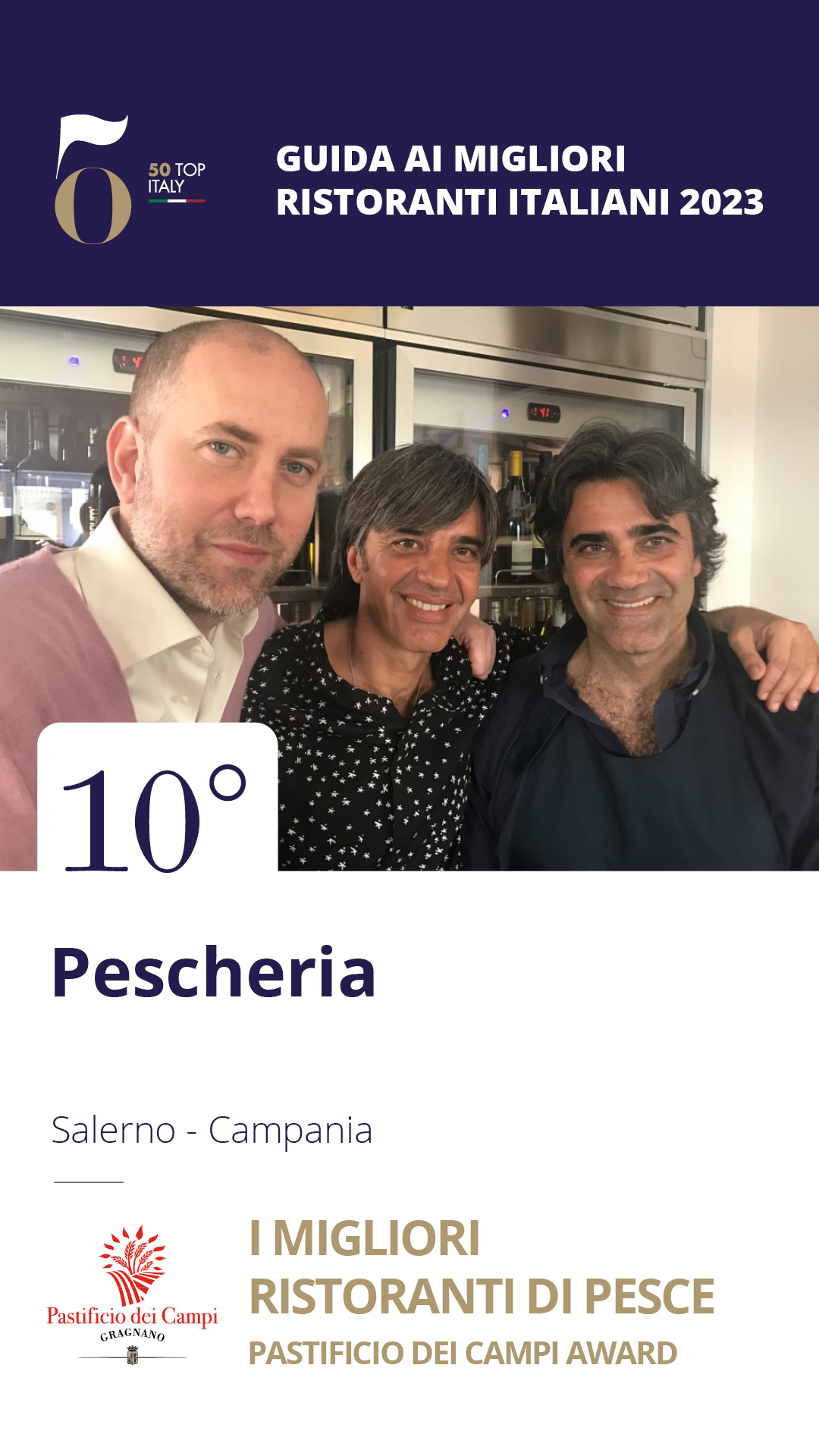 Ecco i 10 Migliori Ristoranti di Pesce della guida 50 Top Italy 2023 – Pastificio dei Campi Award