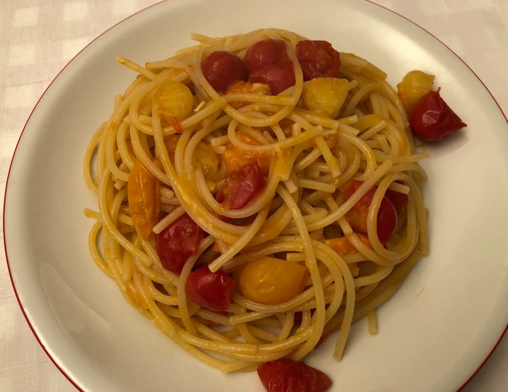Agriturismo Il Raduno, Tramonti, spaghetti con pomodori Re Fiascone