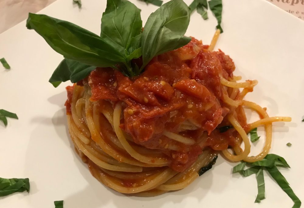 La Terrazza, Bettolino, spaghetti al pomodoro del piennolo nel regno di Patrizio Daniele dal Vomero