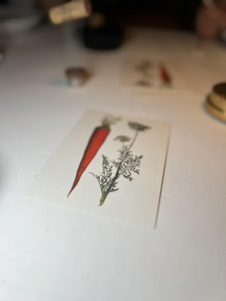 Le cinque portate portano il nome del vegetale principale del piatto, quindi troverete rhubarb (rabarbaro), carrot (carota), Jerusalem Artichoke (topinambur). Una cucina leggera, centrata, con ottimi spunti che mi ha colpito proprio nei piatti principali il topinambur: rana pescatrice della Cornovaglia, funghi selvatici glassati e nocciola e il radicchio alla griglia: lombo di cervo, salsa alla senape. Davvero molto buoni, giocati tono su tono con il colore, cotture molto precise e tanto buon gusto. Tra i dolci convincente quello al limone, meno quello con il gelato alla patata. Carta dei vini già molto ampia, per cuoriosità l’unico vino rosso era il Taurasi di Perillo 2011 con un ricarico più che corretto. Servizio gia rodato, nonostante il breve periodo di apertura.