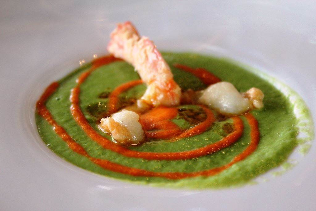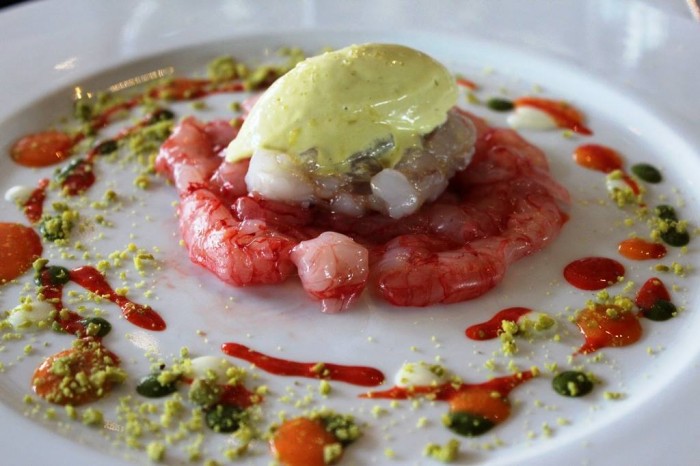 Battuta di gamberi rossi con gelato al pistacchio, materia prima al top, gamberi dolcissimi e l'ottimo gelato salato di pistacchi cremoso al punto giusto come elemento in contrasto con il precedente.