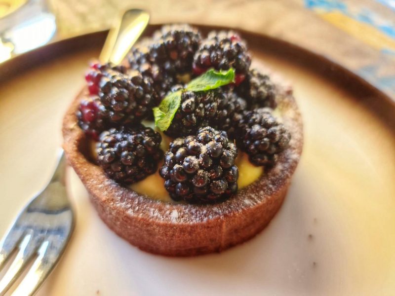 Tartelletta alla frutta di stagione: sono le more le attuali protagoniste di questo classico immancabile in ogni pasticceria. Bella l’idea della frolla al cioccolato, friabile e gustosa con uno spessore accentuato che non valorizza la preparazione nel suo complesso. Crema evanescente al gusto dalla struttura liscia e setola. Ottime le more.