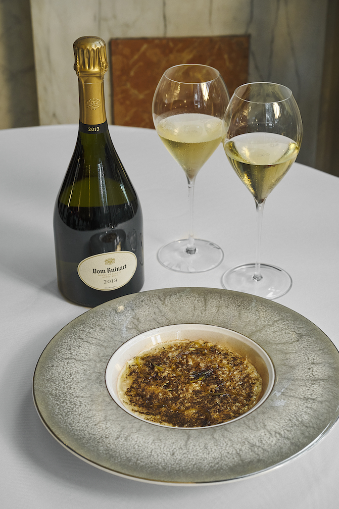 Per tutto il mese di novembre il ristorante romano offrirà un menu degustazione ritagliato per Dom Ruinart 2013 con una bottiglia inclusa del medesimo al costo di 800 Euro a coppia. Il solo Dom Ruinart esce sul mercato a 275 Euro.