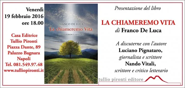 Libro di de luca 18/2/2016 Torna a: Oggi la presentazione del libro di Franco De Luca: la chiameremo Vita La presentazione del libro di Franco De Luca