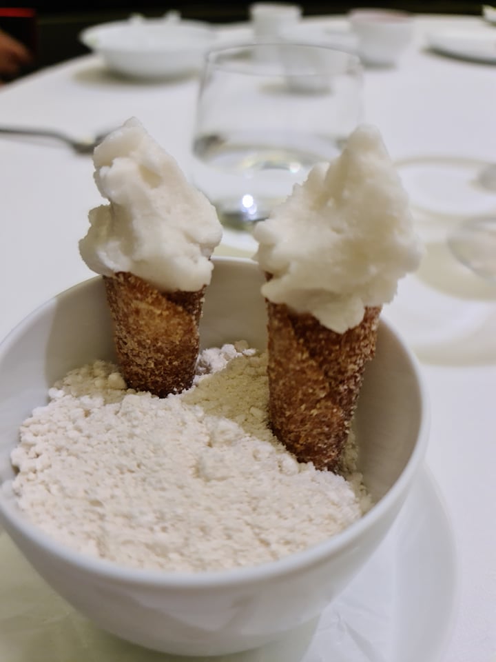 Il dentice, cipresso e mandorla è stato il piatto del viaggio. Essenziale, con l’accenno della nota balsamica del cipresso che esaltava il dentice in una maniera sorprendete. La grassezza, tutta vegetale della mandorla, un tocco da fuoriclasse.