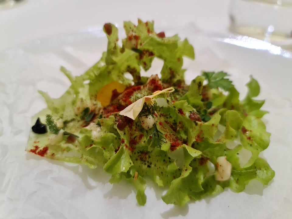 Anche in questo caso i sapori sono in crescendo, il rispetto della materia nella lattuga, quasi giapponese per essenzialità e rigore, la golosità dei gamberi, il suntuoso boccone della tartare di pecora, potente, ma allo stesso tempo elegante. Il tutto aveva una musicalità, un filo logico e parlo della costruzione di un menu, perchè è chiaro che in un percorso di degustazione non si resta colpiti solo dal singolo piatto, ma dall’insieme.