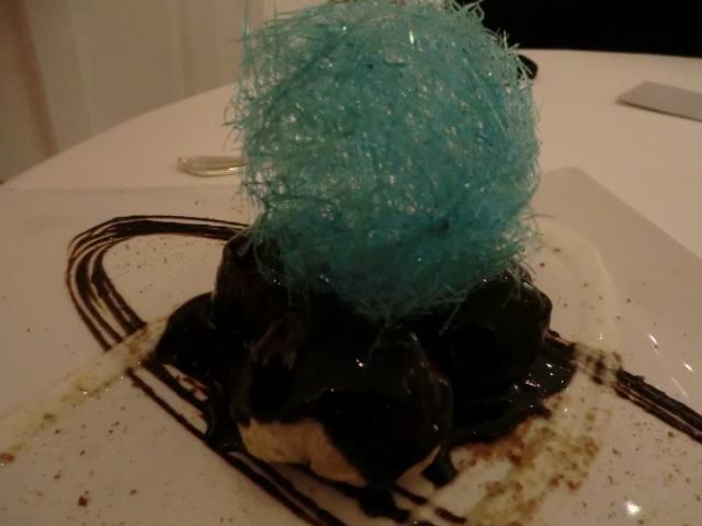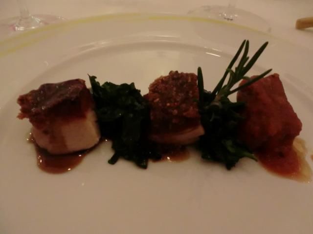 Solo un cenno al Cabernet che ci ha consigliato Maurizio: un grandissimo naso terroso, perfetto negli abbinamento perché molto snello e non impegnativo in bocca. Il Gaia 2009 di Antonio di Gruttola ha invece sostenuto alla grande tutti gli abbinamenti. Viene da dire: ormai nel bicchiere veramente abbiamo tutto in pochi chilometri, come è lontano il tempo in cui uno stellato italiano a stento poteva proporre vino non francese, per non dire del Sud. Il Don Alfonso negli anni ’90 è stata la rpima vetrina della nuova enologia meridionale.