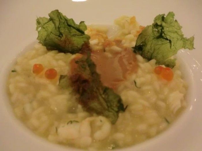 Il riso ha una spinta incredibile, forte e persistente: il piatto è ovviamente molto strutturato e complesso ma decolla con facilà, fa salivare, si mangia con velocità e tanto piacere perché le sensazioni di dolce e di sapidità iodata marina, le consistenze diverse, la freschezza cercata nel cedro che è il più ricco degli agrumi lo rendono interessante e piacevolmente impegnativo.