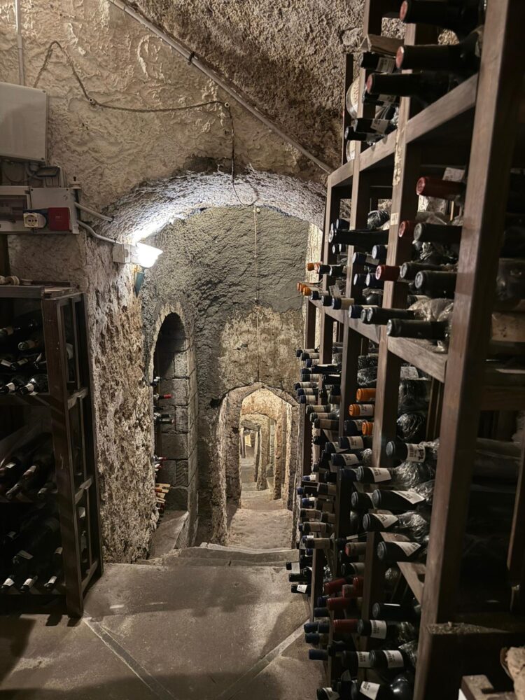 Unico, poi, il viaggio nella cantina declinata tra 25mila bottiglie, 1300 etichette e quel percorso quasi mistico nelle viscere della terra in quello che un tempo era un cunicolo sotterraneo che oggi è diventato un caveau vibrante.