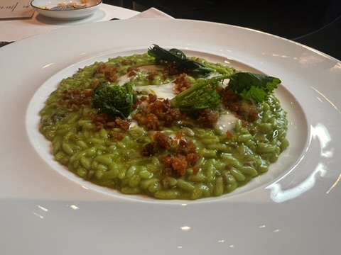 Il riso Acquerello con cime di rapa, salsiccia pezzente e fonduta di blu di bufala e rafano ha dialogato armoniosamente con l’Aglianico del Vulture DOCG “Don Anselmo” 2017, simbolo della Cantina Paternoster.