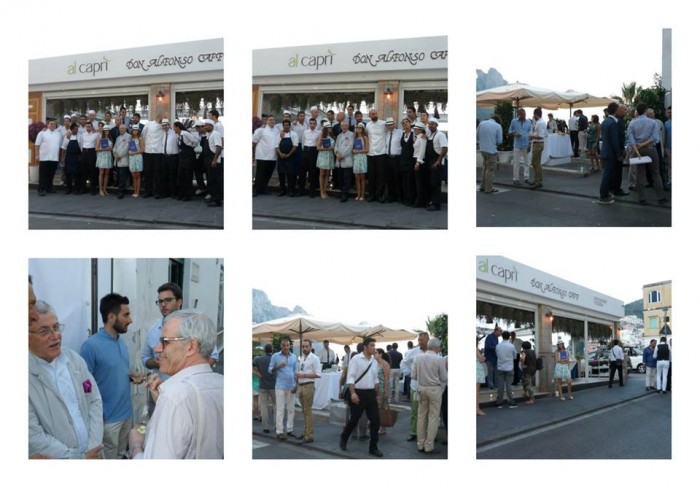 Serata di gala ed aria di festa a Capri in via Roma per il via ufficiale della fusion di uno dei più grandi nomi della gastronomia italiana Don Alfonso Iaccarino e del gourmet esclusivo di Al Caprì, di Massimo Verde ed Enzo Iuele, i patron dell’elegante ristorante di Via Roma che hanno iniziato da ieri una nuova avventura, unendo il loro brand Al Caprì a quello di Don Alfonso, lo storico e gettonatissimo ristorante di Sant’Agata sui due Golfi. E per l’occasione e salutare da vicino i suoi sodali e gli ospiti arrivati anche da Napoli e dalla vicina penisola sorrentina è arrivato a Capri Don Alfonso Iaccarino, accompagnato dalla giovane chef Mariangela Matera Sanseverino una new entry nella famiglia Iaccarino e nello storico staff del Don Alfonso.