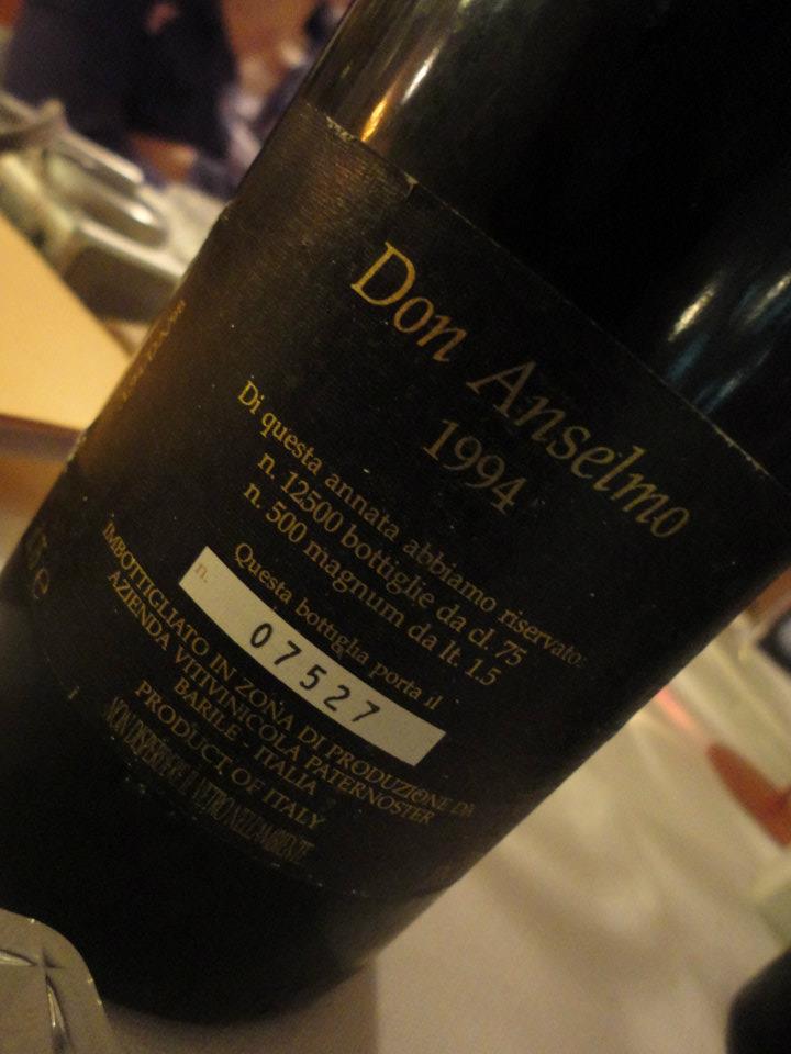 ho nella mia piccola cantina una ultima bottiglia di Don Anselmo del ’97, che guardo sempre con preoccupazione chiedendomi se non sia il caso di aprirla.