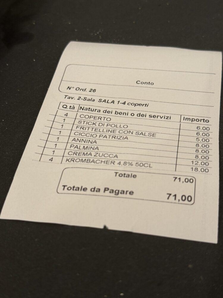 Il conto finale è stato un’ulteriore conferma della filosofia del locale. In quattro abbiamo pagato 71 euro, con una bottiglia d’acqua e due birre in bottiglia Krombacher da 50 cl. Un prezzo assolutamente nella media, soprattutto considerando la qualità del prodotto e il lavoro evidente che c’è dietro ogni preparazione. Locali come Don Carlo meritano davvero i riflettori, non solo per ciò che servono ma per i valori in cui credono e che portano avanti ogni giorno.