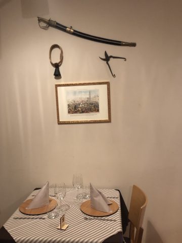 Il titolare, Renato Aliberti, appassionato di armi antiche ( ne troverete in bella mostra alle pareti), ha voluto così il suo locale: caldo, elegante, accogliente. In cucina lo Chef Gennaro Di Rosa, mano rassicurante, in sala il Maitre Vincenzo Salvatore, tanta esperienza, anche in strutture prestigiose all’estero, davvero in gamba. L’amico e sodale di tante cene Antonio Polichetti, sempre più talent scout del gusto, me l’ha fatto scoprire.