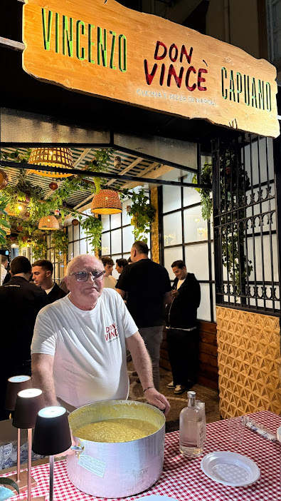 Vincenzo Capuano, insieme a diversi soci tra cui Luigi Forgione, spesso presente in sede, lancia un nuovo format che celebra la tradizione napoletana. Si chiama Don Vincè, un omaggio affettuoso al nonno di Capuano, figura centrale nella sua storia personale e professionale, e fonte d’ispirazione per la cucina proposta. Situato sulla Riviera di Chiaia a Napoli, con una seconda sede al Vomero, il locale accoglie i clienti in un’atmosfera calorosa e familiare che richiama le case del passato, dove ogni piatto aveva il sapore della famiglia. La sala, sotto la direzione di Francesco Marazzi, garantisce un servizio efficiente, puntuale e cortese.