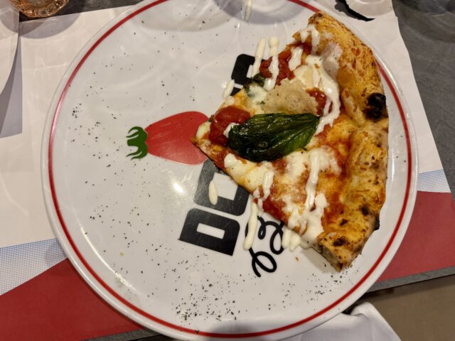 Alla console della pizza di Donna Brigida c’è Luca Dario e il suo team, che oltre ai grandi classici propone pizze di carattere. L’impasto al carbone, che richiama la terra nera del Vesuvio, e l’impasto ai grani dedicato alla pizza pastiera sono esempi di ricerca.