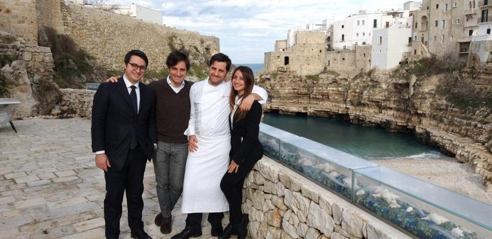 Dopo aver conquistato la Stella Michelin nel 2013, Felice Sgarra ha continuato a guidare la brigata di Umami con piglio fermo e deciso. Ma a fine 2018 ha radunato i suoi tre fratelli – il gemello Riccardo, addetto al Food and Beverage, Roberto già maître dell’Umami, e Maria Teresa, mente amministrativa della squadra – e ha accettato la sfida di Polignano.