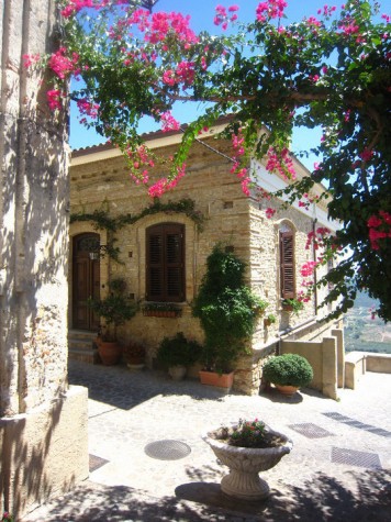 La sensazione che si prova all’ingresso è di pace, silenzio, rotto solo da grilli, tortore, gazze, qualche trattore e soffio del vento a seconda dell’ora del giorno e della stagione. Questo borgo, restaurato in conservativo, immerso tra palme, pini marittimi, querce, alberi d’arancio, limone, melograno e secolari olivi, risale circa al 1600. La struttura originaria era un casale nobiliare, lo testimonia la deliziosa piccola cappella ancora consacrata che si affaccia sul cortile. Qui si dice messa tutte le domeniche, l’orario è orientativo, il sacerdote quando arriva suona la campanella e comincia a cantare.