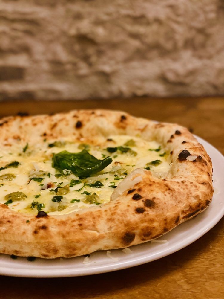 La pizza, dall’impasto leggero e idratato, con cornicione evidente e leggermente crunch, la prepara Gerardo Rossi, pizzaiolo di origine casertana, con l’arte della pizza che gli scorre nel sangue fin dal bisnonno. Per intenderci, il suo trisavolo Raffaele De Bono, insieme con Raffaele Esposito, nell’ 800 creò la pizza Margherita.