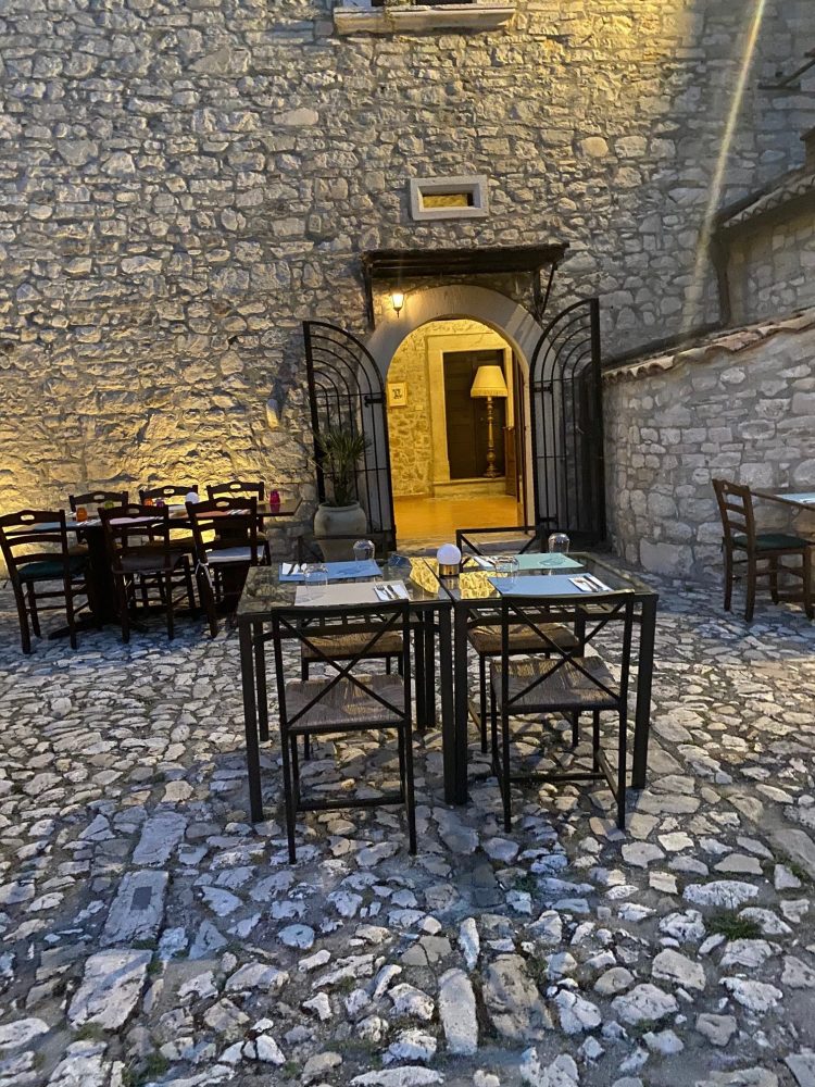 Vino e birra prevalentemente sanniti, con attenzione alle etichette di agricoltura biologica, poi qualche referenza di birra in bottiglia di provenienza belga. L’ambiente del Forte Evo, che ospita la sala, è in pietra viva, conservando un fascino incredibile, mentre in questa stagione è possibile cenare all’aperto, ammirando il panorama del borgo di Pietrelcina illuminato.