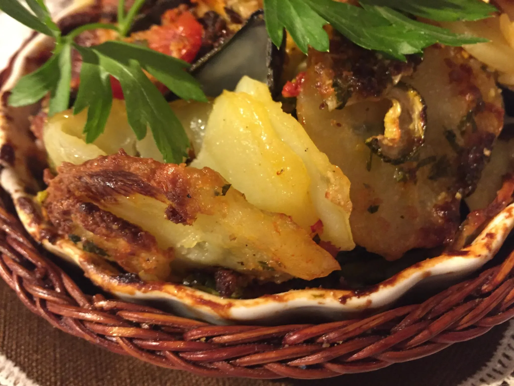 Riso patate e cozze 14/6/2015 Torna a: Problemi esistenziali: dove mangiare riso patate e cozze a Bari? La tiella barese: riso, patate e cozze
