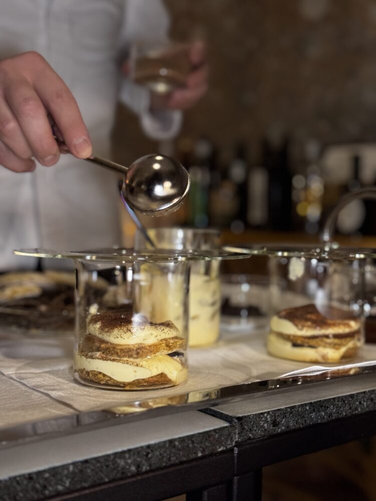 Suppergiù è composto al tavolo dall’Impero stesso: zigoli dolci, carrube e caffè di cicoria, formano “suppergiù” un tiramisù con note però più fresche e un sapore più lungo e intenso.